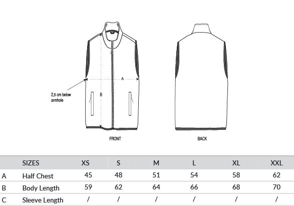 Sleeveless. Elastic binding at neck edge, armhole and hem. Inside back neck grosgrain loop. Nylon coil zip with metal zip pull and cord ending. Brushed fabric with anti-pilling finish on the inside and outside. Front side welt pockets with zip opening. Inside back neck tape in recycled polyester.