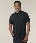 The Stanley Coaster mid-light polo for men. Fitted. Set-in sleeve. Flat knit rib on collar and sleeve hem. Inside heavy single Jersey back neck tape. Front inserted placket with two buttons in matching body colour. Slit and bartack finish at side seam hem. Single-needle topstitch at shoulder seams. Bottom hem with narrow double-needle topstitch.